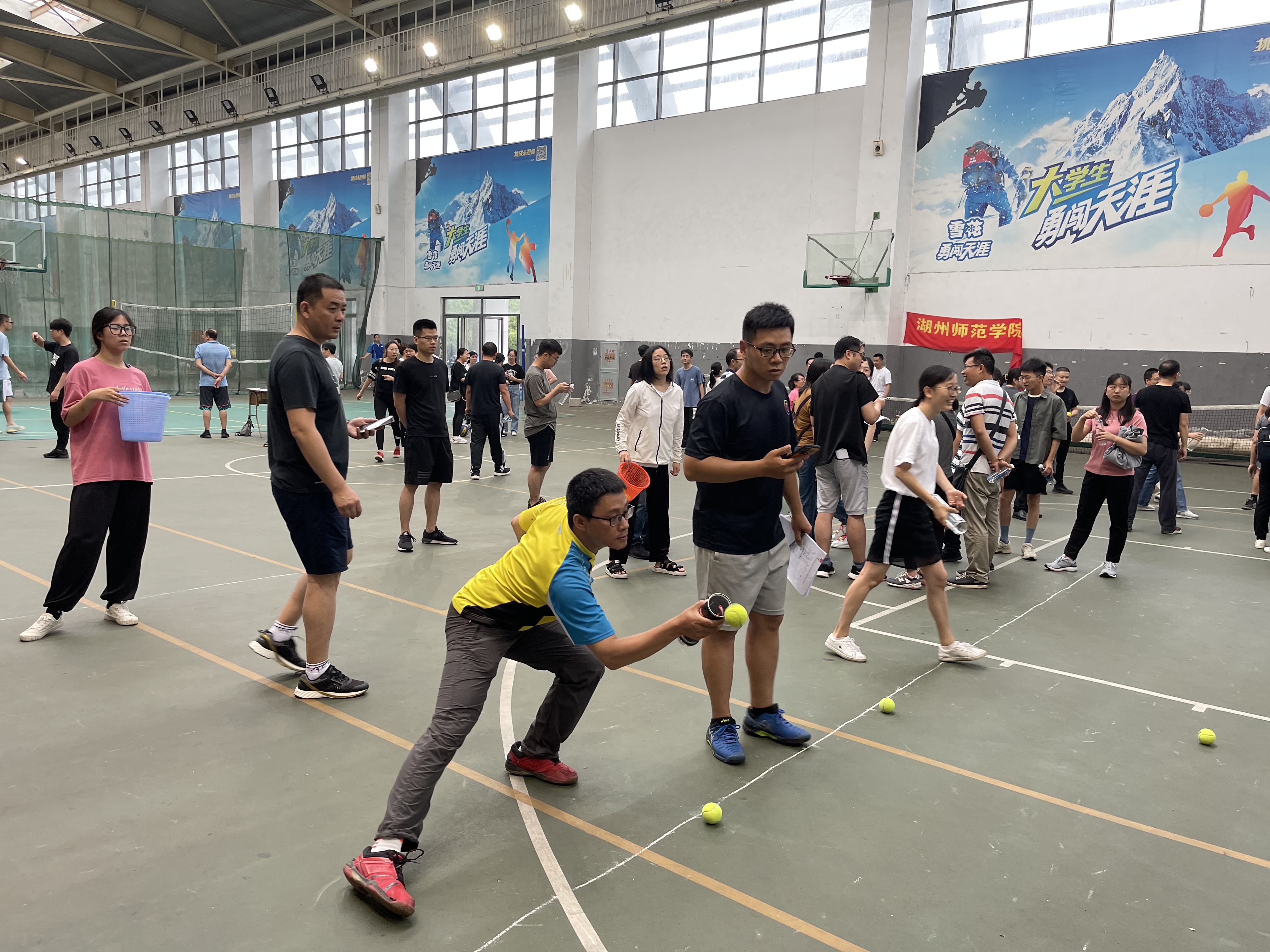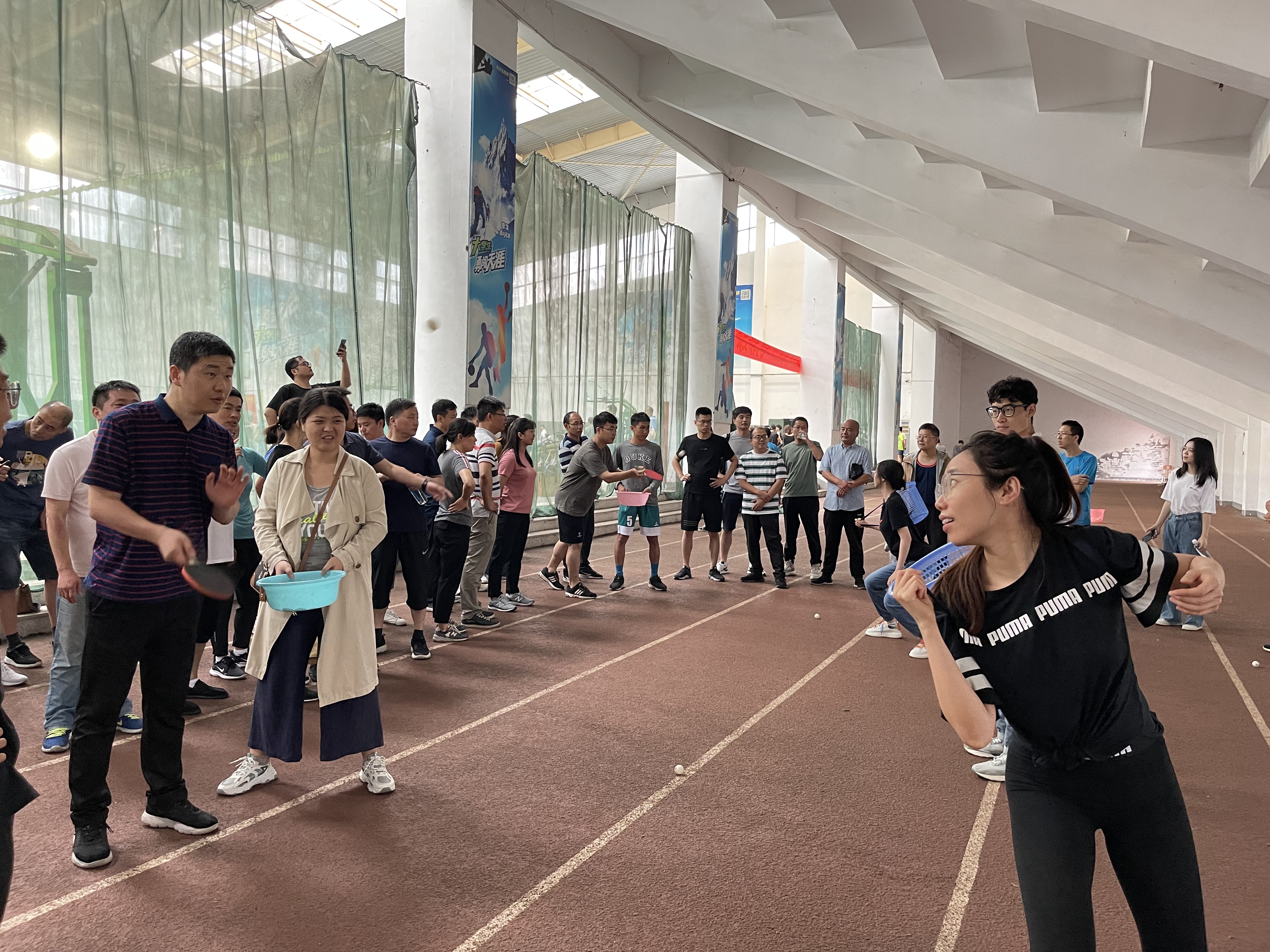 运动会共设6个集体项目:足球踢准、投篮、乒乓球大灌篮、引球入瓮、发球比赛、海底捞鱼。今年运动会全部设置集体项目,目的是增强各学院、部门的团队合作意识,激发运动潜能,展现出我校教职工蓬勃向上的朝气和阳光健康、热爱生活的精神风貌,让大家在工作之余增进相互交流和互动。比赛当天虽然大雨滂沱,但各位运动员仍精神饱满,秩序井然,整个体育馆到处都洋溢着欢乐的笑声和喝彩声。