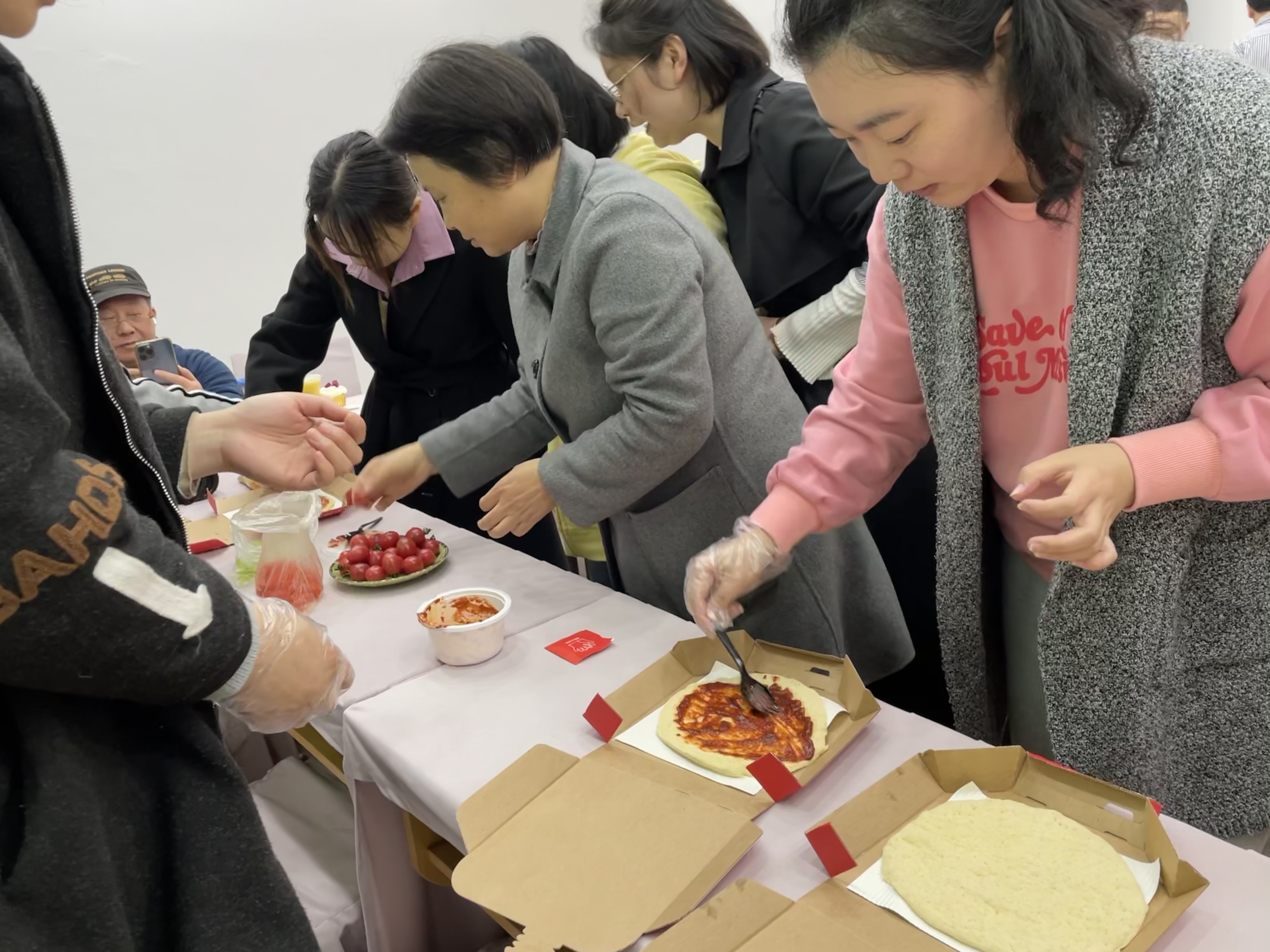 活动中,各位女教工充分发挥女性的心灵手巧与美食天赋,和面团、捶打披萨底、散上各种馅料和酱汁,一番忙碌之后,一个个各具特色的披萨便诞生了。活动现场欢声笑语不断,甜蜜飘香。