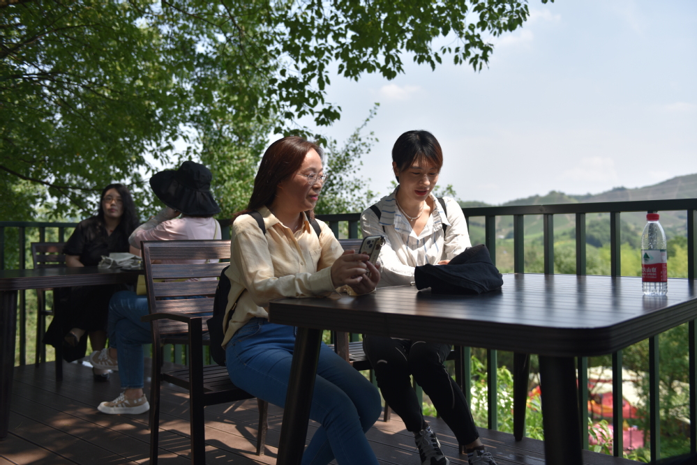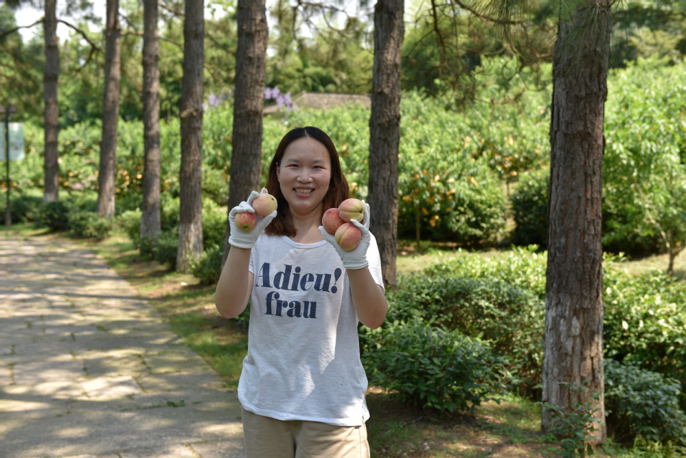 大家三五成群,一边欣赏美景,一边谈天说地,时而体验采桃乐趣,时而停下来合影留念,尽情地享受大自然的气息和炙热的阳光,平时的劳碌繁忙和工作压力随之远去。