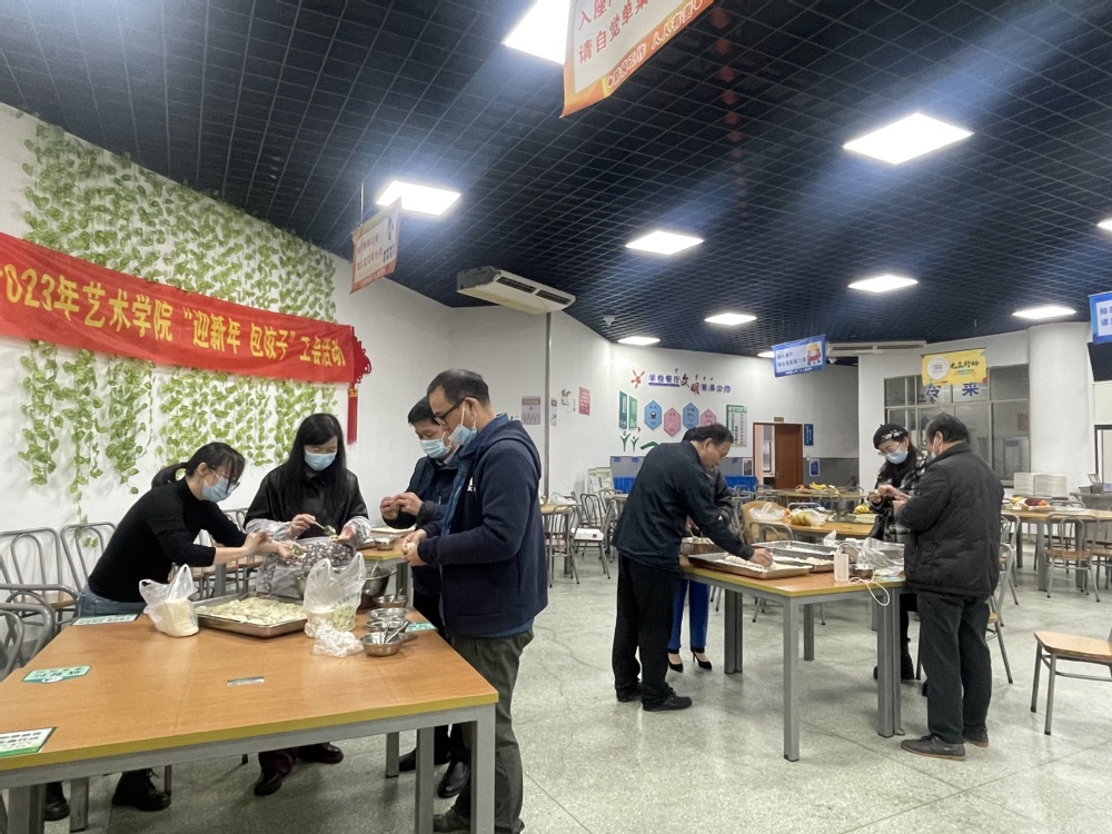 为了迎接2023年新年的到来,艺术学院组织全体工会会员开展了一场“包团圆饺,迎喜乐年”活动,工会会员们在紧凑繁忙的工作之余,聚在一起,一边包饺子,一边谈笑风生。