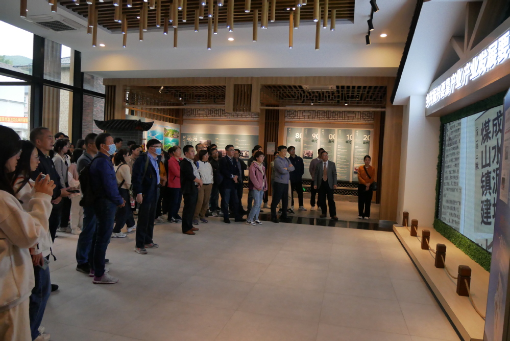 在长兴县产学研基地主任祝震林陪同下,大家参观了乡村振兴新川案例馆、初心馆、诚信馆、精品民宿,在乡村振兴新川案例馆内,一幅幅珍贵的老照片生动地描述着新川村从“靠山吃山”到“产业兴村”的发展历程。随后,院领导班子成员以及大数据专业教师与新川村村委班子成员就推动校地共建赋能乡村振兴开展座谈。