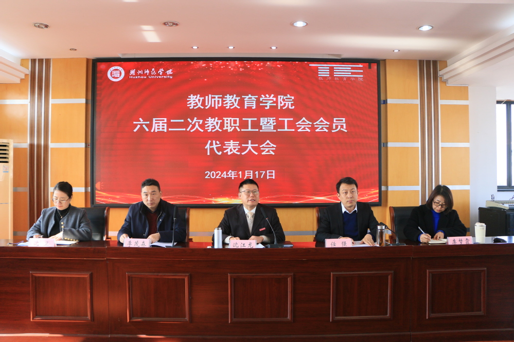 2024年1月17日中午12点,教师教育学院六届二次教职工暨工会会员代表大会在学院10--512会议室隆重召开。正式代表、列席代表42人出席会议,以高度的责任感和使命感共商学院发展大计。大会由学院党委书记沈江龙主持。