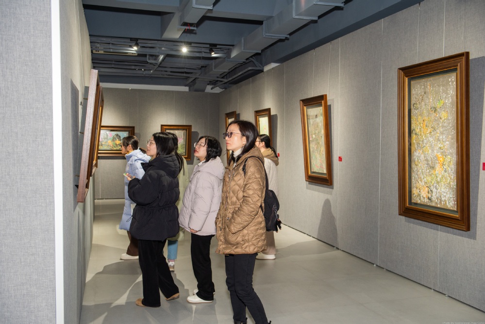 西塞山美术馆离开繁华都市熙攘人群,座落在宁静的乡村田野中,让艺术作品走进天地间、竹林里、农田间。叶向礼先生的百幅荷花作品静立于此,不同于油画或雕塑的立体感,水墨画以其线条和色彩勾勒出深深的意境。女教工共同见证了这场精彩的艺术盛宴,感受浓厚的文化氛围,与绘画作品进行了一次零距离对话。