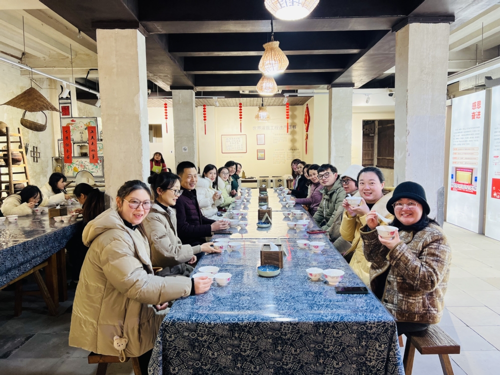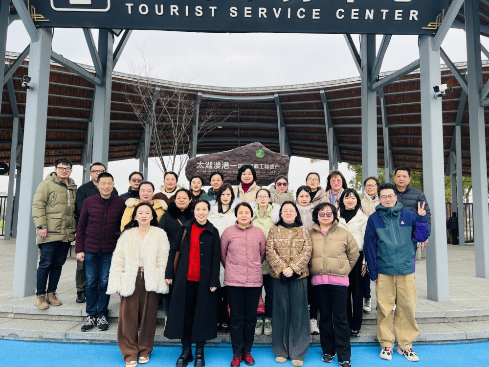 教职工们集合前往太湖溇港,途径环太湖路,沿途欣赏太湖美景,到达溇港后,在讲解员的带领下,参观了太湖溇港文化展示馆、义皋古村落,体验“三道茶”礼俗等,品味太湖溇港--古老水乡的韵味与活力。