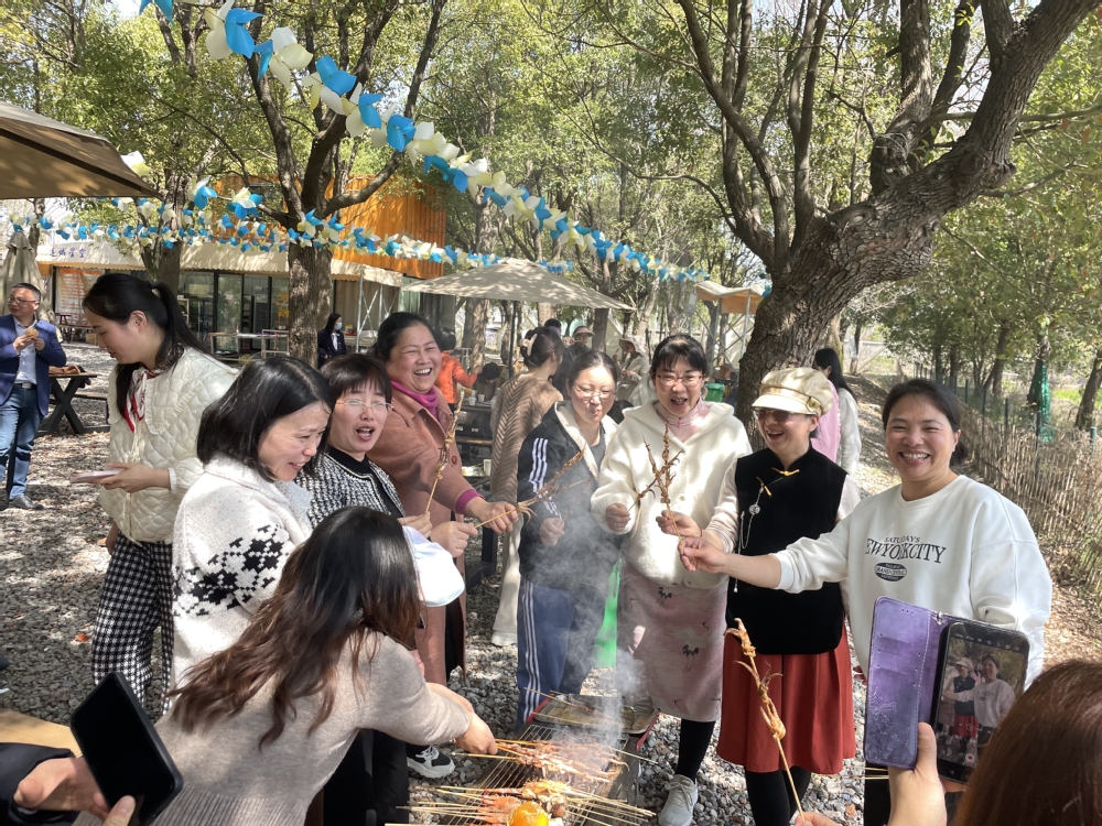 在一片花海中央,感受着春的气息,让人如痴如醉享受着美。花香飘逸,春风拂柳的同时也不能少了人间烟火气。本次活动的户外动手烧烤项目,让老师们身心放松享受自然的同时,在忙碌的工作之余交流生活中的小美好。