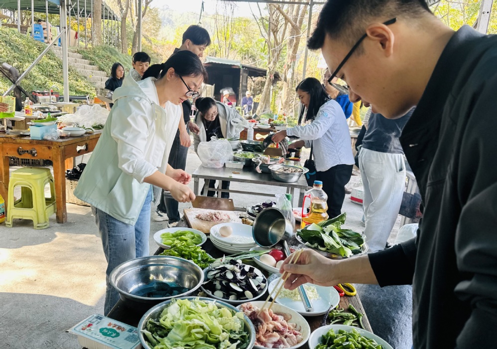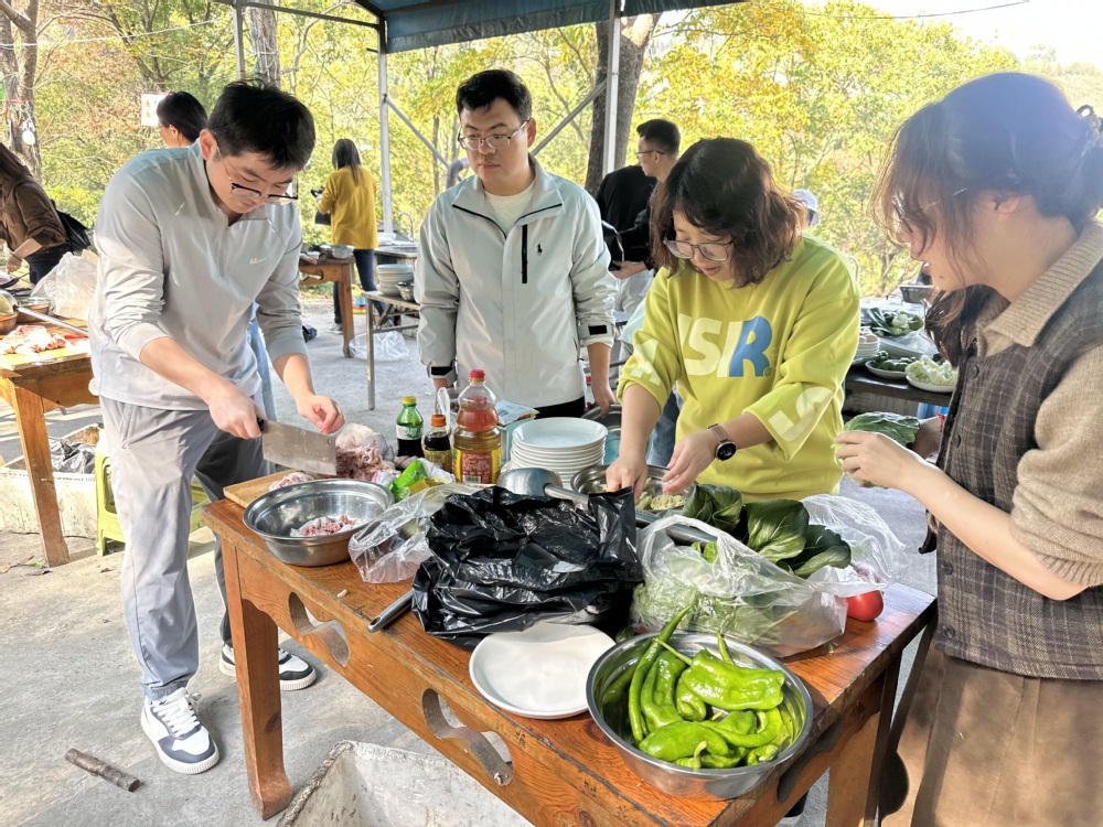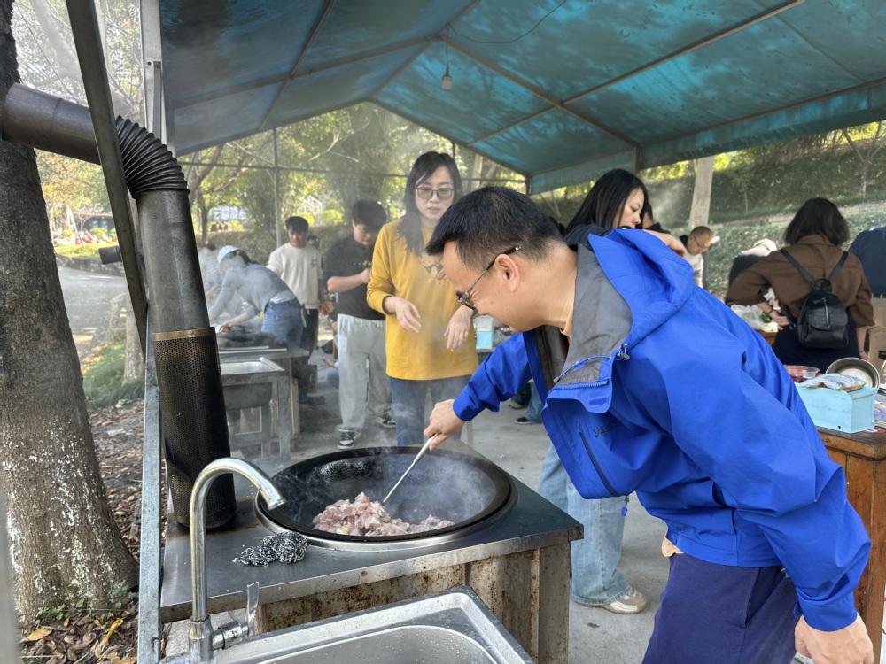 活动中,教师们踊跃参与了骑马、滑草、射箭等多项趣味运动,在驰骋与滑行中释放压力,萌宠乐园的互动更带来阵阵欢笑。中午时分,大家分工协作、自助烧饭,从切配到烹饪默契配合,在亲手制作与共享佳肴中拉近了彼此距离。