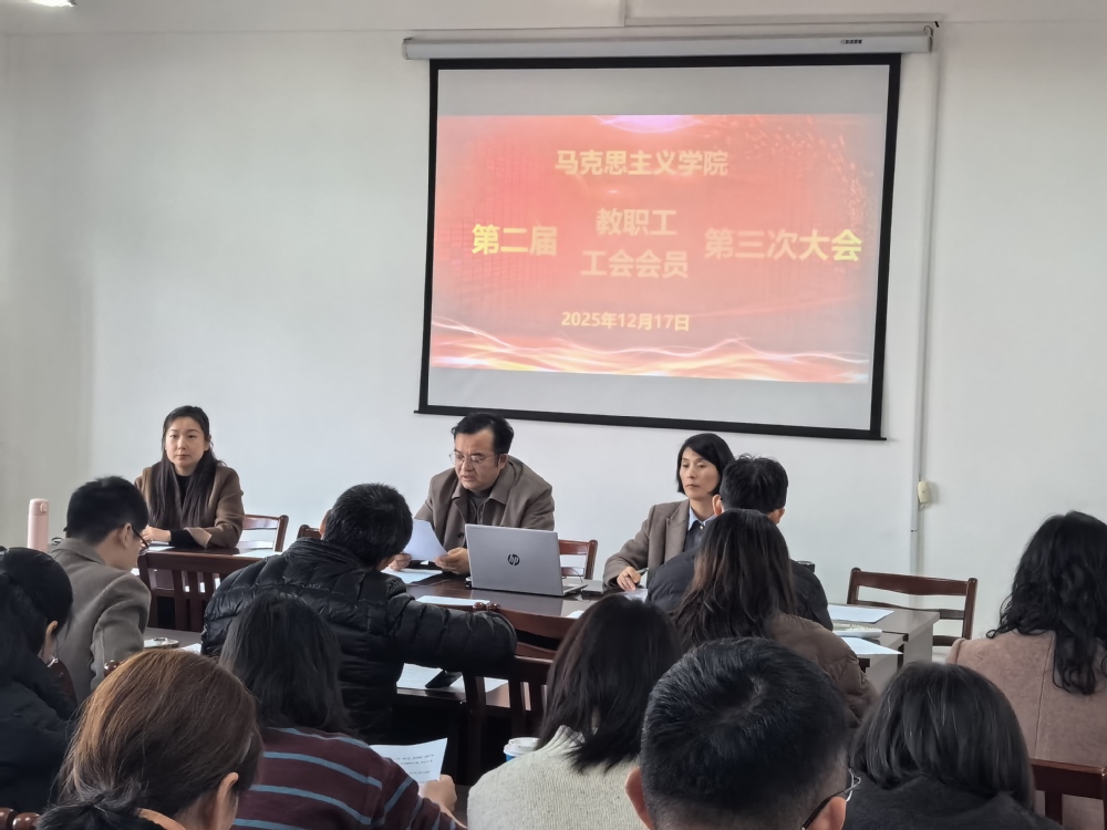 12月17日,马克思主义学院在学院会议室隆重召开第二届教职工暨工会会员大会第三次会议。会议由学院党总支书记许金凤主持,37名教职工参加,共商学院发展大计。大会严格按照民主程序,圆满完成各项议程。