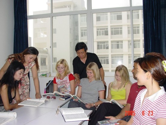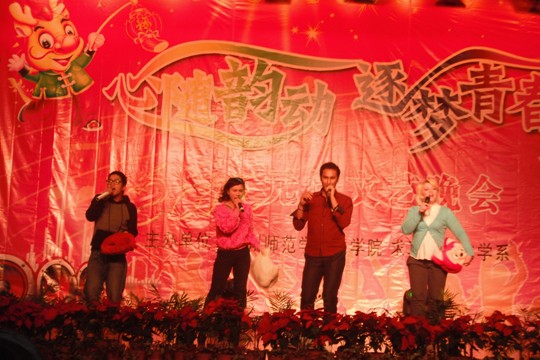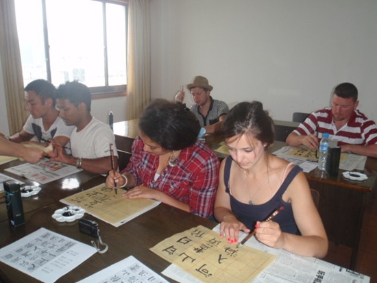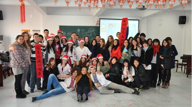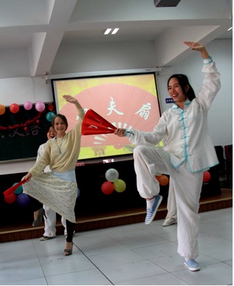 3.流行歌曲大赛 4.韩国留学生参加省“中华诗词朗诵大赛” 5.运动会开幕式表演 6.运动会上显身手 文化体验 1.参观莲花庄 2.参观京剧服饰馆 3.师生欢度中秋佳节 4.中外学生圣诞节联欢 5.参观湖笔博物馆 6.登上仁皇阁 来湖交流 四、快乐学习