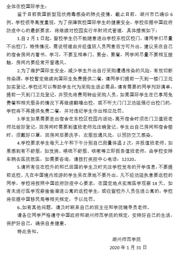 关于预防新型冠状病毒感染的肺炎再告全体国际生书