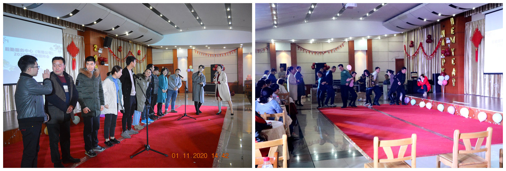 随后,中心文艺爱好者唱歌跳舞,鼓瑟齐鸣,为大家献上一场视听盛宴。每一轮抽奖环节和游戏互动更是将现场氛围推向高潮。场下的观众时而欣赏表演,时而互相交谈,诉说着一年中的趣事,也畅谈着对新一年工作和生活的美好期望。