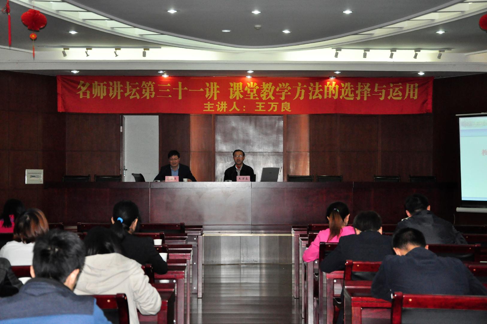 11月5日下午,国家级教学名师、浙江工业大学计算机科学与技术学院院长、软件学院院长王万良教授做客名师讲坛第三十一讲,作题为“课堂教学方法的选择与运用”的专题讲座。讲座由分管教学校长蒋云良主持,我校近3年新入职教师70余人到场聆听。