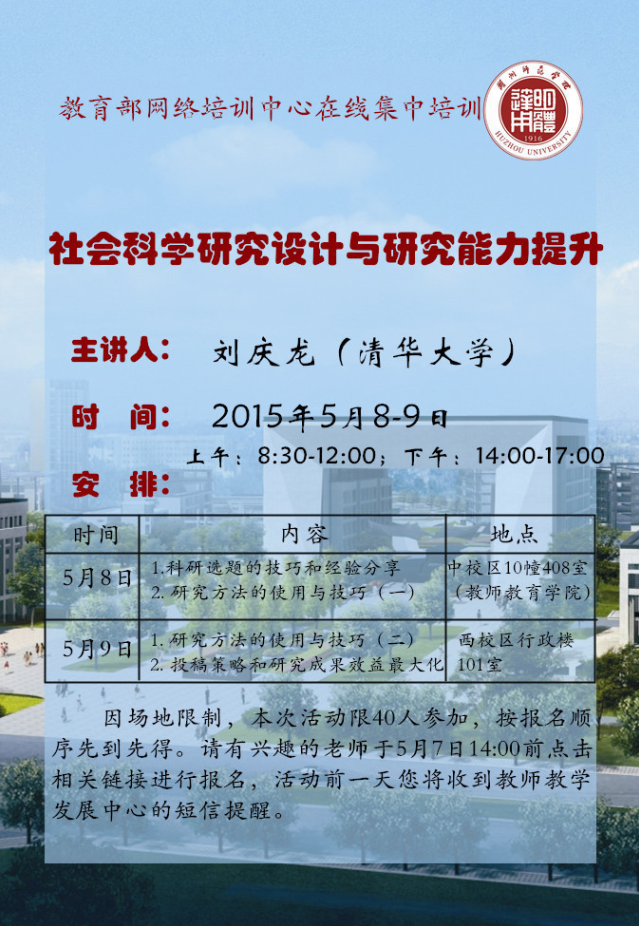 教师教学发展中心培训专题(在线集中培训):社会优米官网首页下载设计与研究能力提升报名通知