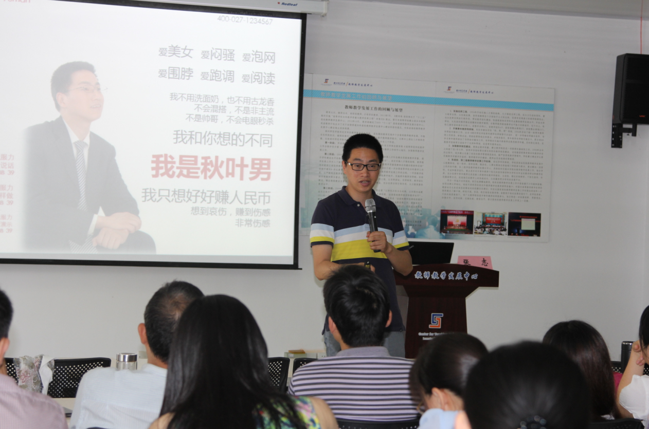 为提升我校教师教学课件制作能力和水平,6月17日,教师教学发展中心邀请著名PPT设计专家、武汉工程大学副教授张志老师(网名“秋叶”)来我校作“教学课件制作与提升”专题讲座,我校近3年新入职教师等70余人到场聆听。