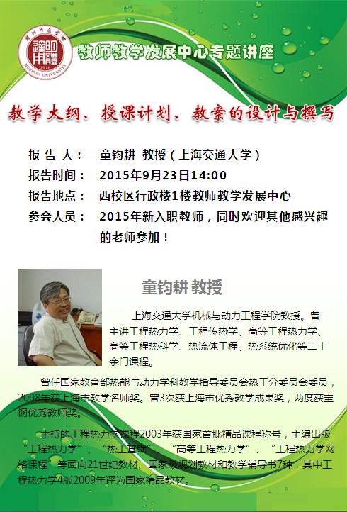 【教学讲座】教学大纲、授课计划、教案的设计与撰写――童钧耕