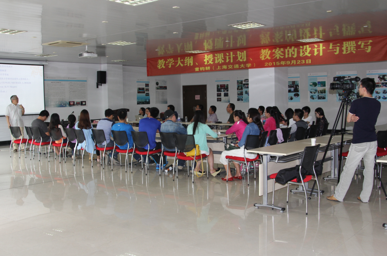 9月23日,2015年新入职教师教学技能培训专题讲座第二讲开讲。应教师教学发展中心邀请,上海市教学名师、宝钢优秀教师两度获得者、上海交通大学机械与动力工程学院童钧耕教授来我校做“教学大纲、授课计划、教案的设计与撰写”专题培训,我校2015年全体新教师参加了本次活动。