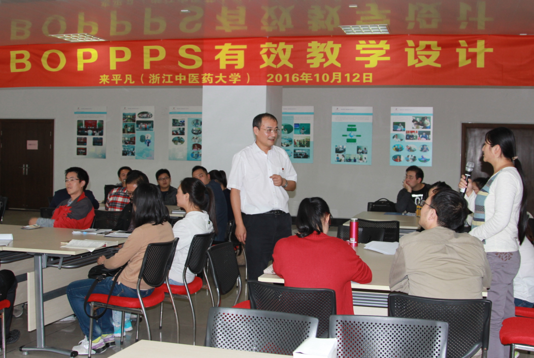 10月12日下午,全国教育系统先进工作者、教育部高等学校中医学类教学指导委员会副秘书长、浙江中医药大学教师教学发展中心主任来平凡教授,应我校教师教学发展中心邀请,来校做了一场以“BOPPPS有效教学设计”为主题的教学工作坊。我校2016年新入职教师40余人参加了本次培训。
