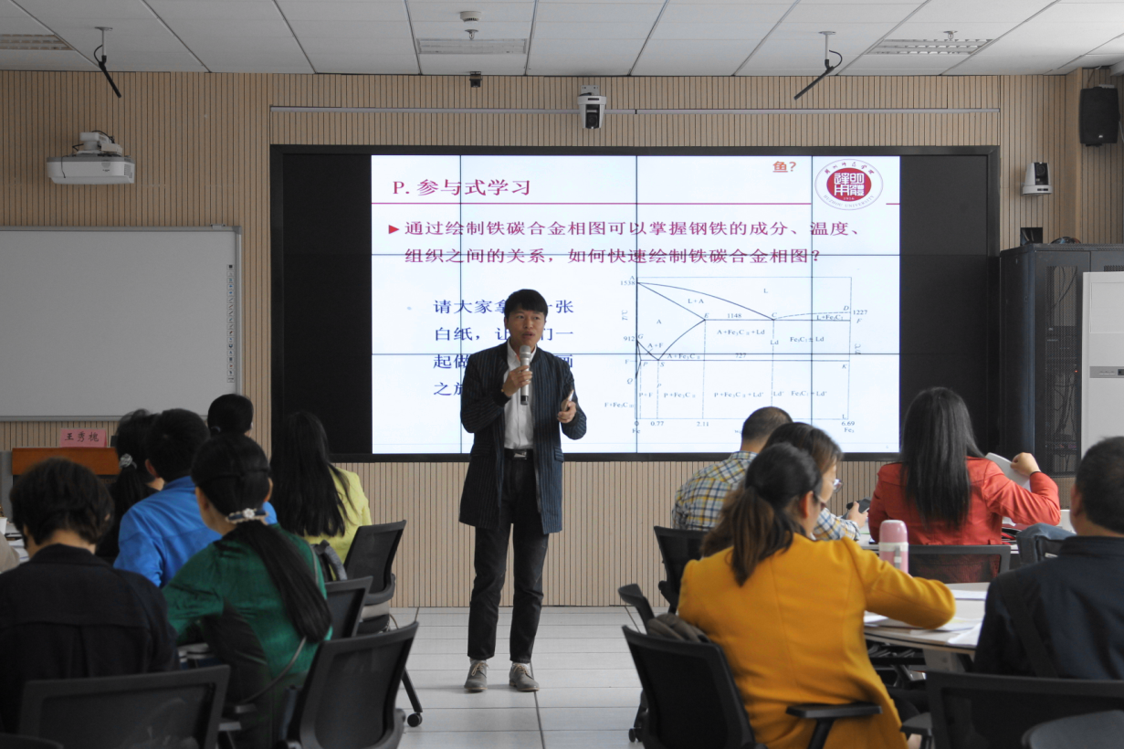 第二天,每位教师自选1个知识点,根据BOPPPS模组进行教学设计,并分组操练,通过演练、同侪互评、王教授点评、完善教学设计等环节进行内化吸收。分组演练结束后,王教授再集中所有参训者进行反馈总结,帮助指导提高。工学院徐云杰老师、社发学院王峰老师根据BOPPPS模组设计的课堂教学,获得了王教授及参训老师的一致好评。