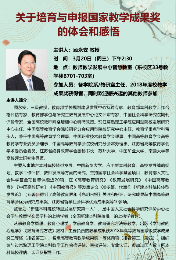 【教学讲座】关于培育与申报国家教学成果奖的体会和感悟——顾永安