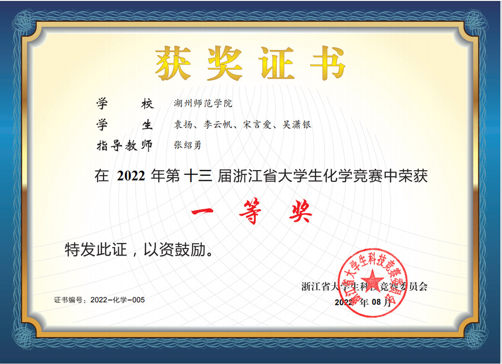 “宇和政盛·同源康·国药杯”第十三届浙江省大学生化学竞赛于2022年7月-8月举行,本届大学生化学竞赛的主题为“绿色化学,智创未来”。来自浙江大学、宁波大学、浙江工业大学等省内37所高校单位,共542支参赛队伍报名参赛。