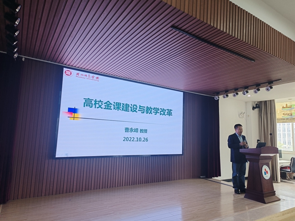 2022年10月26日,曹永峰名师工作室负责人曹永峰教授应邀为湖州职业技术学院商贸与经济管理学院做了“高校金课建设及教学改革” 的讲座,学院全体教职工聆听了讲座。