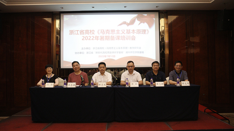 为学习贯彻省第十五次党代会精神,喜迎二十大,加强思想政治理论课建设,展示我省高校《马克思主义基本原理》(以下简称《原理》)课教学改革与建设成效,提升教师的教学能力,7月11日至14日,在省教育厅宣教处指导下,由浙江省高校《原理》教学研究会、教育部全国高校思政课“手拉手”集体备课中心(浙江大学-浙江省)主办,我校马克思主义学院协办的浙江省高校《原理》课2022年暑期备课培训会顺利召开。