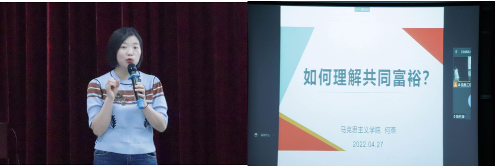 为加强青年学生对共同富裕的认识和理解,4月27日晚上,信息工程学院邀请工作室主持人何燕老师为学生带来了以“共同富裕的逻辑意蕴”为主题的讲座。信息工程学院学生党支部书记以及党校110名学员参与本次党课讲座。