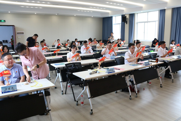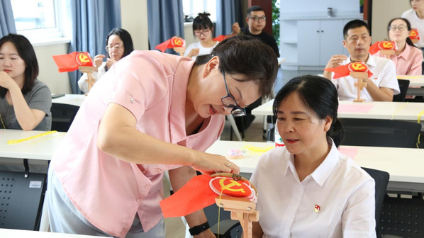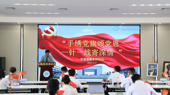 一针一线总关情,党的恩情诉不尽。为庆祝中国共产党成立103周年,推动党建联建行动走深走实,继承和发扬党的优良传统,激发党员同志的爱国爱党情怀,发扬好党员同志精雕细琢、守正笃实“绣花匠”精神,提升党组织的凝聚力和战斗力,我院党总支与杨家埠街道党工委联合开展“手绣党旗颂党恩,一针一线寄深情”主题党日活动。学院教工党员、学生党员,杨家埠街道机关党员代表、企业党员代表、村民党员代表等30余名参与活动。