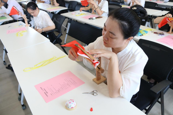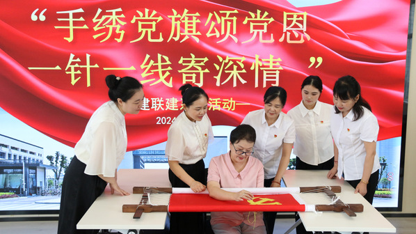 活动现场,国家级刺绣艺术大师何晓霞一边教大家绣党旗,一边讲述中国共产党的光辉历程,党员在一针一线,一丝一缕中,绣出了爱党爱国的崇高情怀。何晓霞表示,党员在绣党旗的过程中对党有了更深的理解、亲近感和崇敬感,也通过实践体会到了务实的精神,一针一线,踏踏实实,唯有实干才能让人生出彩。