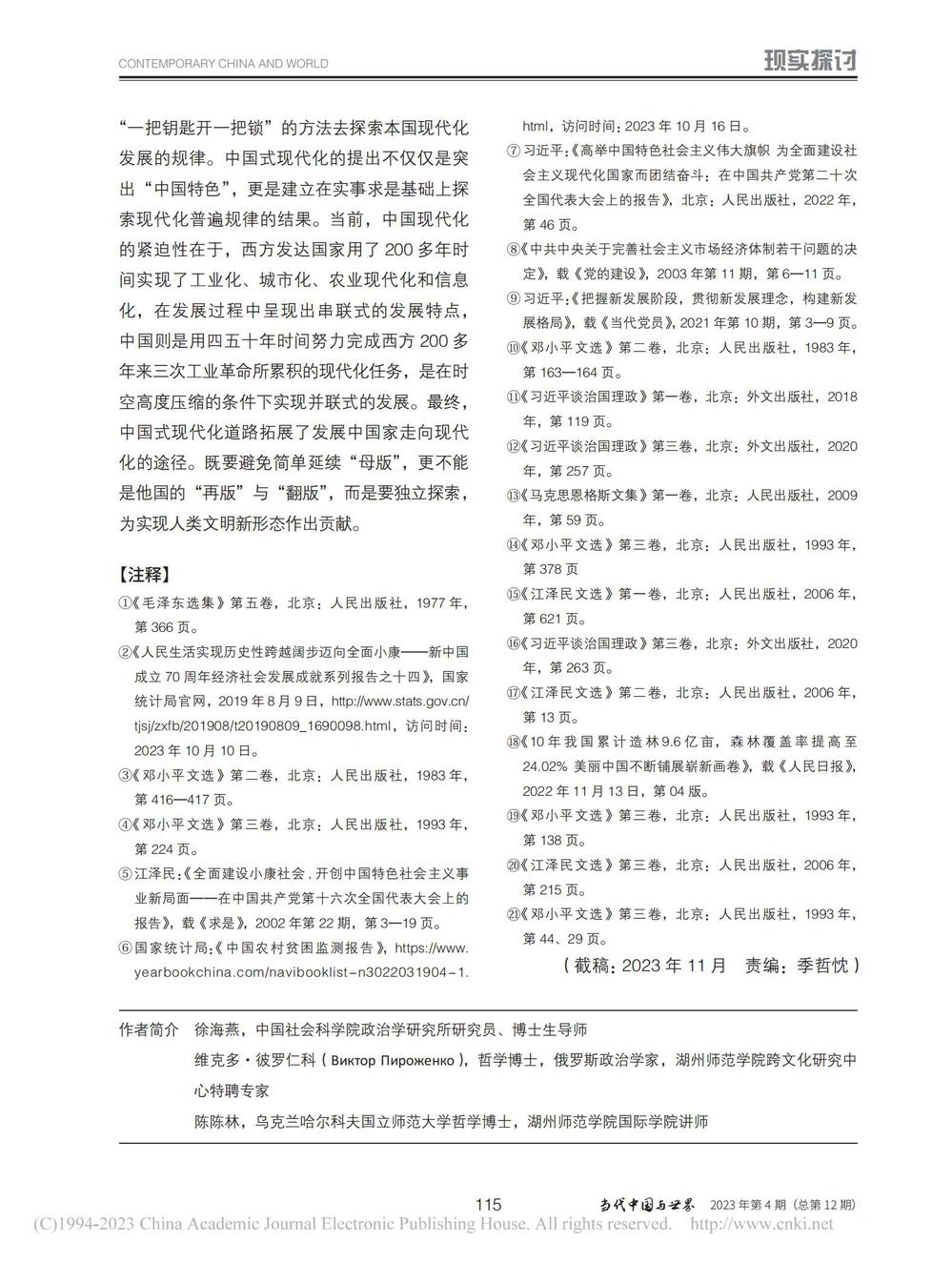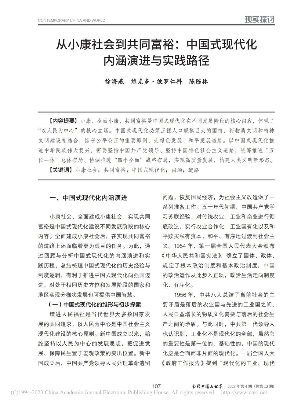 徐海燕、维克多·彼罗仁科、陈陈林:从小康社会到共同富裕:中国式现代化内涵演进与实践路径