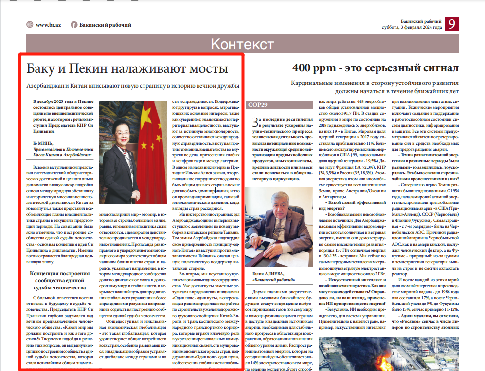 驻阿塞拜疆大使郭敏在阿主流媒体发表署名文章《携手构建人类命运共同体 共同谱写中阿友好新篇章》