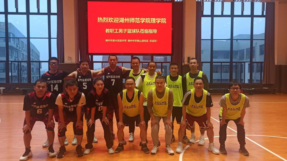 为了加强与实习学校的友谊,推进兄弟院校间的沟通与交流,11月17日下午,理学院工会组织教职工男子篮球队来到吴兴实验中学,在吴兴实验中学体育馆展开了一场与吴兴实验中学教职工篮球队之间的友谊篮球赛。