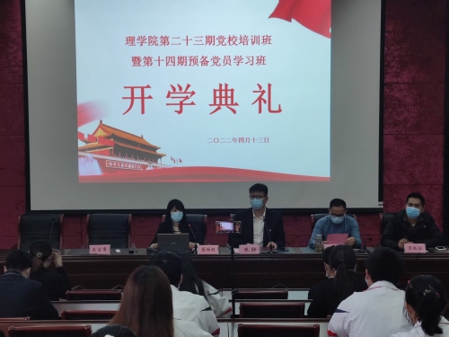 为深入贯彻习近平新时代中国特色社会主义思想,持续推进党史学习教育常态化长效化,进一步提高入党积极分子和党员的政治素质、理论修养。2022年4月13日,在理学之光报告厅理学院第23期党校培训班暨第14期预备党员学习班开班仪式顺利举行。出席本次典礼的有理学院党委书记朱静,理学院党委副书记李永强,数学第一党支部蔡维超,学生物理第二党支部李维征。为响应疫情防控要求,本次党校采取线上、线下相结合的模式。