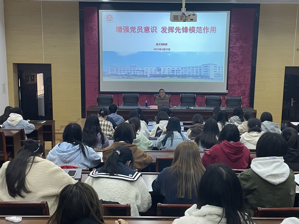 4月25日晚,学院分党校专题党课在理学之光报告厅举行,虞文清教授受邀主讲党校全体学员100余人参与学习。