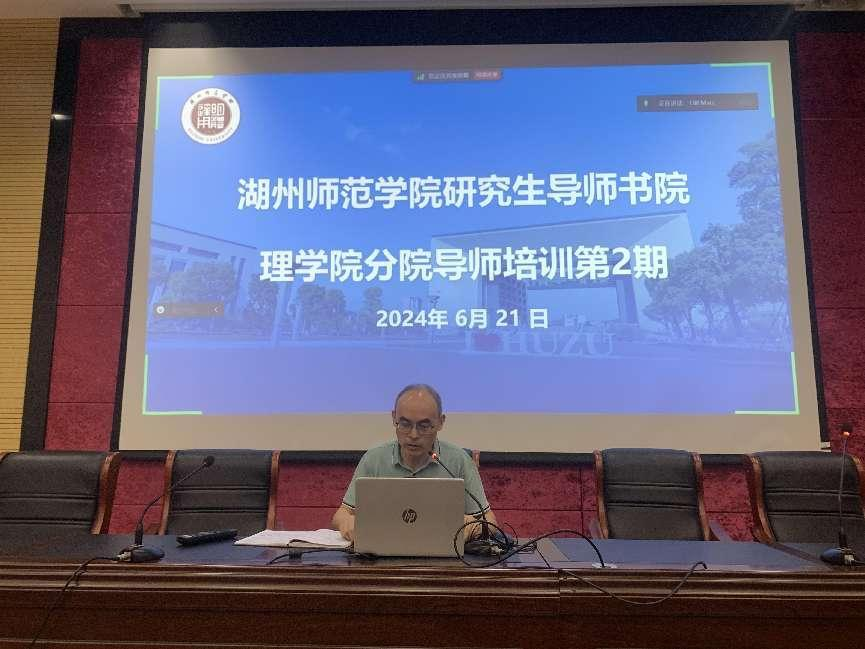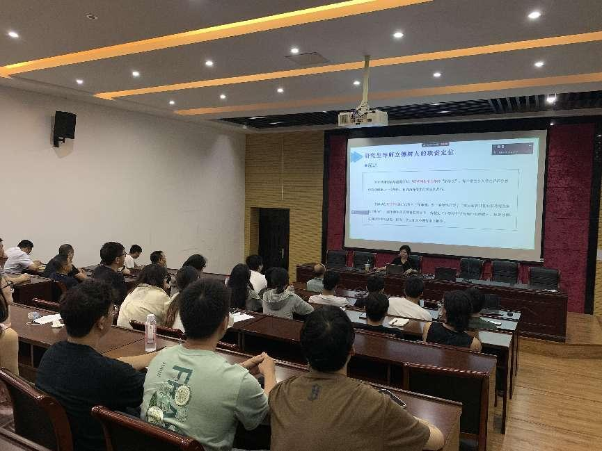 6月21日,理学院邀请研工部部长、研究生院副院长傅晓萍为我校师生作题为《研究生导师的职责与担当》的专题报告。此次培训采取线上线下相结合的方式,理学院院长沈彩万等研究生导师和2023级能源动力硕士研究生参加了导师书院培训,活动由理学院副院长毛俊雯主持。