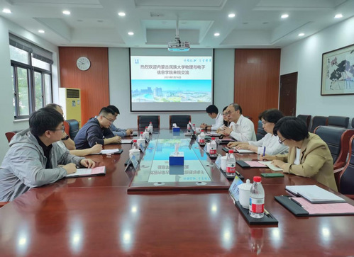 5月16日上午,内蒙古民族大学物理与电子信息学院党委书记李喜军一行4人到理学院调研交流。理学院院长沈彩万,原理学院院长于少英,副院长顾海霞,校研究生院副院长刘艳鑫,党政办、学工办负责人参与了座谈。