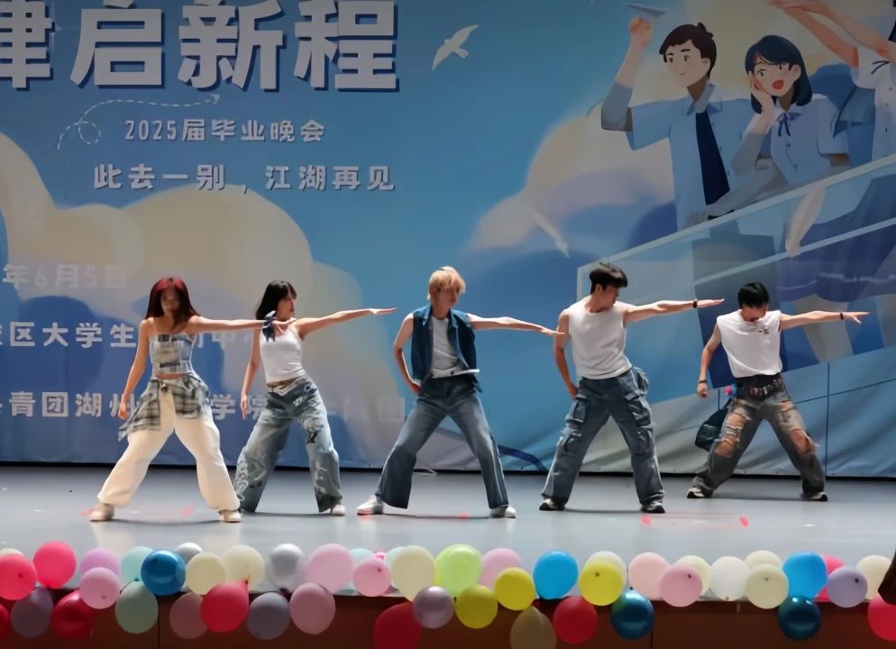 李佳莉、蒋越如等同学演唱的《干杯》,熟悉的旋律引发全场合唱,大家跟着节奏挥动双手,现场气氛热烈,充满青春的欢乐与感动。爱理之声合唱团压轴合唱《夏天的梦是什么颜色的呢》《再回首》将气氛推向高潮,当再回首,背影已远走的旋律响起,千余支手机闪光灯在礼堂汇成流动星河,映照着学士服上未干的泪痕。
