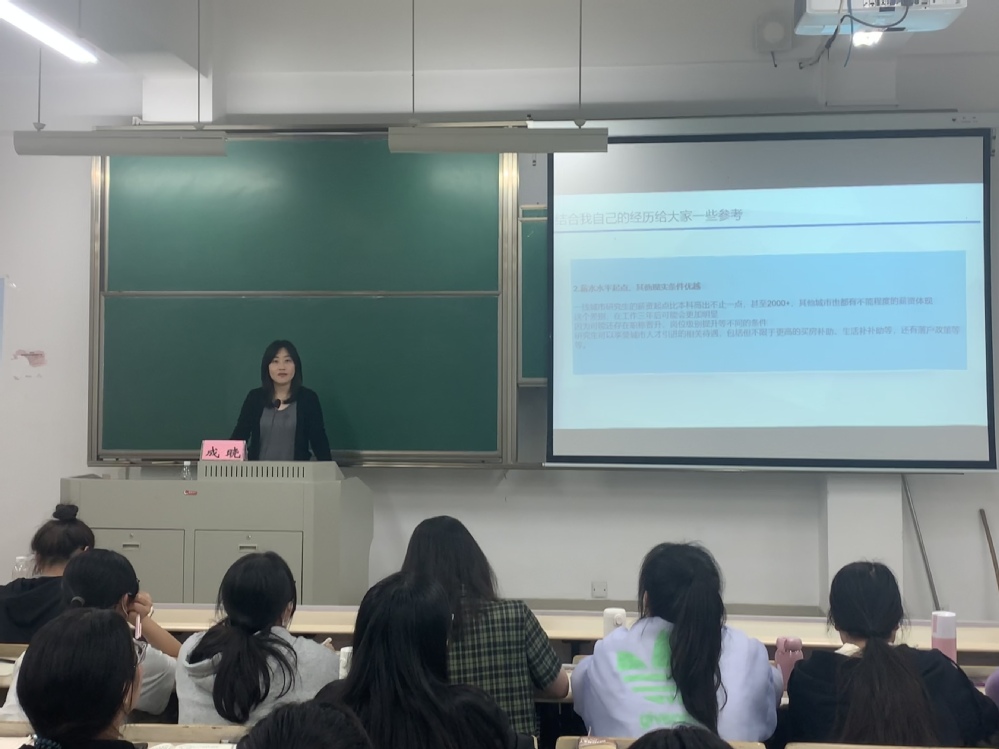 接着,成老师向同学们介绍了考研的相关流程与注意事项,并从学校与专业的选择、各类划线的含义以及对本科院校层次的担忧等方面为同学们作出了详尽的解答,并督促在场的各位同学好好把握在校时光,着力于自身专业素质及各方面能力的提高。