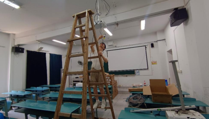 信息技术中心老师检视设备安装质量