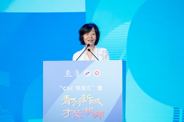 李青致辞,她表示,国家留学基金委发起的“CSC学友汇”活动,自2019年起,通过学术交流、成果展演、求职就业、产学研融合等多种形式,为各位从海外学成归来的CSC学友搭建交流平台,打造发挥作用的线上线下社群。活动已举办十余场,累计吸引千余名留学人员参与。本次活动聚焦绿色智造,围绕半导体与光电、智能装备、生物医药、可持续发展与人文社科创新四个领域进行探讨。此外,还将走进“绿水青山就是金山银山”理念诞生地安吉余村,学习体悟习近平新时代中国特色社会主义思想在浙江的萌发与实践。她希望与会人才能够充分地交流共进,各展所学,各尽所知,国家留学基金委也将进一步贯彻落实加快和扩大教育对外开放、坚定培养国家急需人才不动摇的要求和部署,全力做好各项服务,为更多人才出国留学和回国发展提供更广阔的舞台。