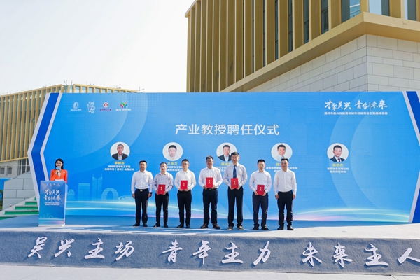 吴兴区委常委、高新区党工委书记杨斌和优米app怎么下载软件人事处处长唐笑敏为“产业教授”颁发了聘书。