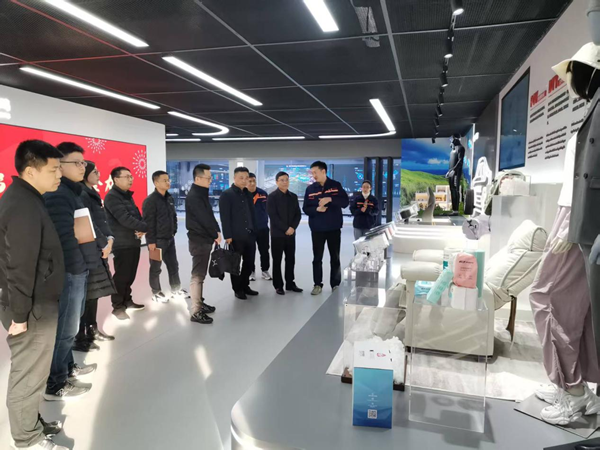 新凤鸣集团是中国企业500强之一,湖州基地作为新凤鸣集团跨地域发展的重要载体,已形成聚酯纤维全产业链布局。调研团队参观了产品展厅并了解企业成长历程、科技创新进展,与企业负责人围绕产业升级需求展开交流。楼建林指出,校企要以“产业教授”“科技副总”为抓手,依托新凤鸣集团的国家企业技术中心、全国示范院士专家工作站和学校的各类高能级科创平台,联合开展高精尖的技术研发,实现人才共育共享和科技成果转化。双方约定要建立常态化沟通机制,细化合作方案,深入推进校地企教科人一体化工作。