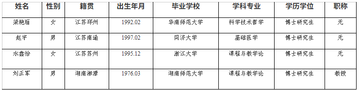 经过公开发布招聘计划、接收简历、资格审查、面试、政审、体检、人才工作会议、人才领导小组会议、校长办公会议等程序,确定下列人员为我单位拟聘用人员,并公示如下: