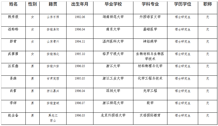 经过公开发布招聘计划、接收简历、资格审查、面试、政审、体检、人才工作会议、人才领导小组会议、校长办公会议等程序,确定下列人员为我单位拟聘用人员,并公示如下: