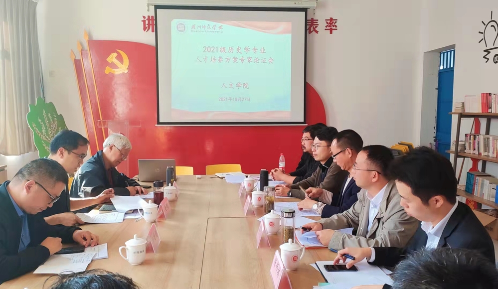 10月27日下午,人文学院2021级历史学(师范)本科生优米app官方下载入口手机版方案专家论证会在13-305会议室召开,应邀出席论证会的专家有湖州中学副校长全刚、湖州市高中历 史教研员魏钧、湖州市初中历史教研员杨继明。教学副院长刘旭青、科研副院长鲁卫东、历史系全体教师参加了此次会议。