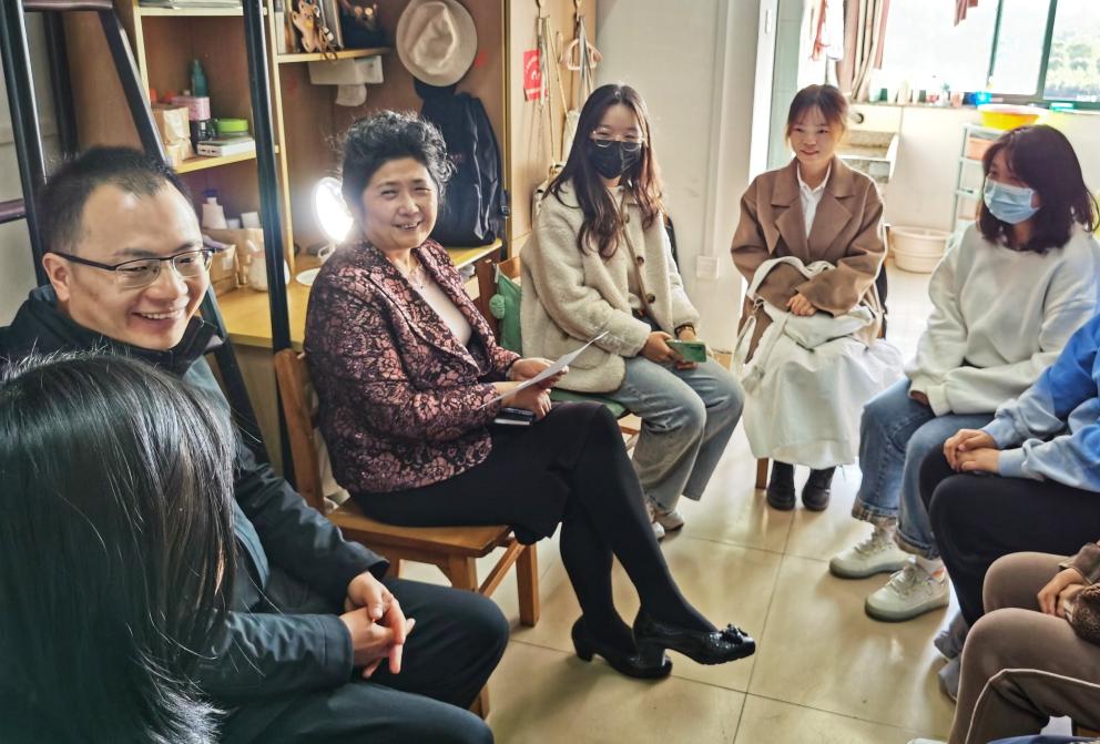 潘校长及各位领导老师亲切的笑容与关怀的言语让学生们敞开心扉,和老师领导们分享着自己在大学里的学习生活,以及在生活中遇到的问题。潘校长叮嘱同学们要注意自身安全,尽量不要和网友见面,夜晚出门时要结伴出行,尽量选择在物美价廉、便宜好吃的食堂就餐。潘校长还指出学院要多组织楼道逃生演习活动,学生们也可以自行熟悉逃生路线,确保发生意外时第一时间逃离。同时,潘校长也非常关心学生们的学习方面的问题,询问同学们与任课老师及班主任之间是否形成了高效紧密的交流。最后,潘校长还嘱咐大家在寝室里要相互关心、相互帮助,积极发挥团队协作精神,注意安全,减少外出,共同营造良好的学习、生活环境,以良好的面貌迎接在校园里的新生活。