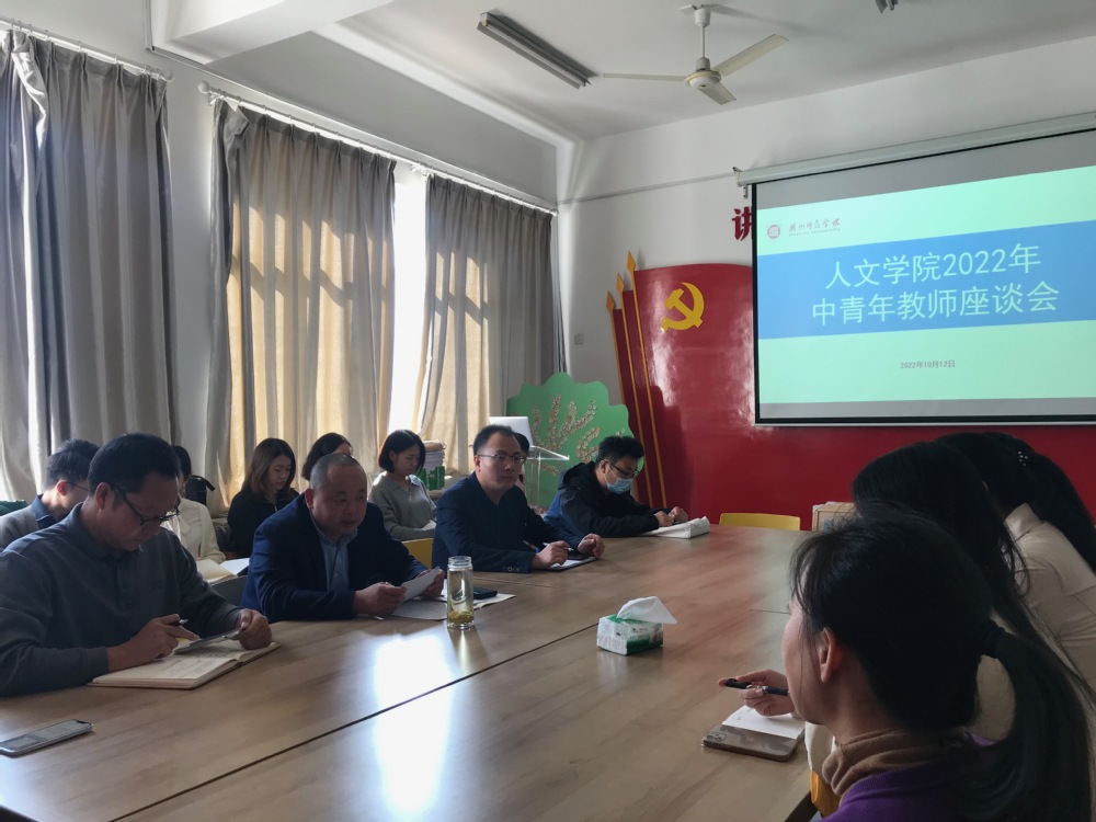 10月12日下午3点整在13幢305会议室召开了人文学院2022年中青年教职工座谈会。参加会议的有人文学院近30名中青年教师,会议由院长王绍峰主持,学院领导蔡振春书记、教学副院长刘旭青出席会议。