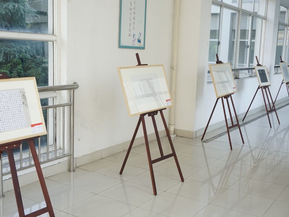 本次书法大赛用展示学生书法作品的形式喜迎党的二十大。9月28日完成对书法作品的筛选后,学院对本次大赛的获奖作品与校语委举办的“笔墨中国”汉字书写大赛的获奖作品进行精心装裱,并于10月14日上午正式展出。前来观展的师生众多,作品引起了大家的热烈讨论,赞叹之声连绵不绝。