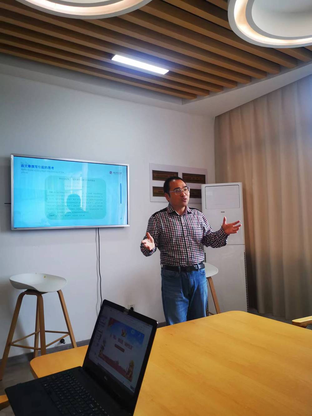 10月28日下午,历史系教研室在人文学院502会议室举办学术沙龙。本次沙龙主题为“实践与理论:文科融合背景下的红色历史教育”。主讲人张剑老师分析梳理了湖州抗战口述史料,结合自己的课堂教学,为教改实践提供了一种可行思路。教研室全体成员参加了本次学术沙龙,对张剑老师的报告进行了热烈讨论,作出了积极的建议和指导。