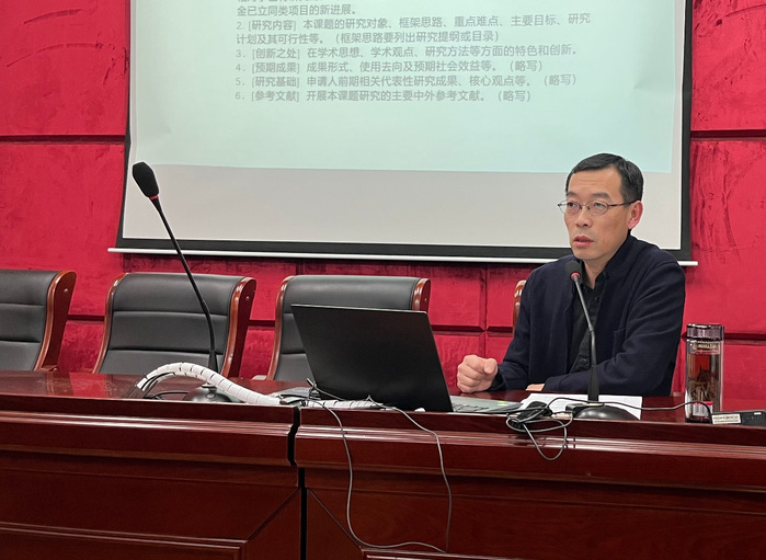 陶然教授从“项目与成长”“项目选题”“申报书撰写”三个方面展开,结合个人多年申报与评审经验,细致而深入地解析了申报国社科基金过程中需要注意的问题,鼓励青年教师将课题申报看作学术成长的必要环节和实践训练,始终保持研究热情,努力在自己深耕的学术领域取得令人瞩目的成就。接近两小时的精彩讲座博得了在场教师的热烈欢迎,最后在交流互动中圆满结束。