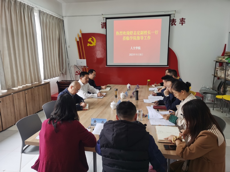 11月8日上午,校领导舒志定副校长一行来学院调研指导工作,教务处处长唐卫宁、人文社科处处长潘明福陪同,学院院长夏德靠、副院长鲁卫东、学术副院长关琮严及国家语言文字推广基地成员参加会议。
